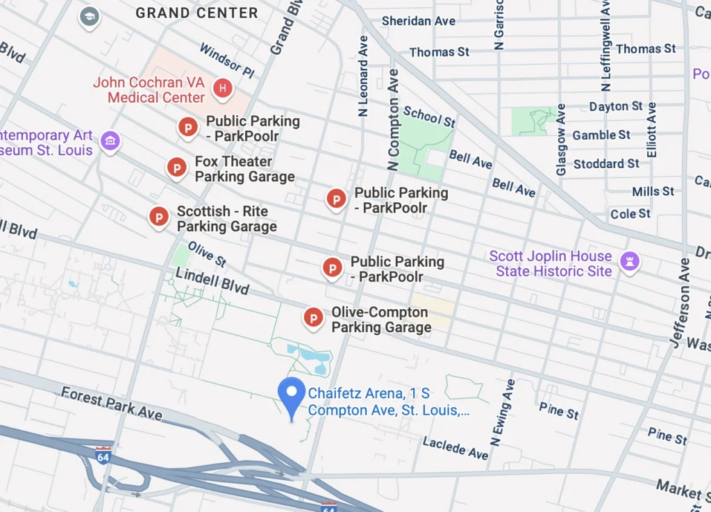 Please allow sufficient time before the event for your travel and parking. St. Louis traffic is often busier around Chaifetz Arena in relation to events.